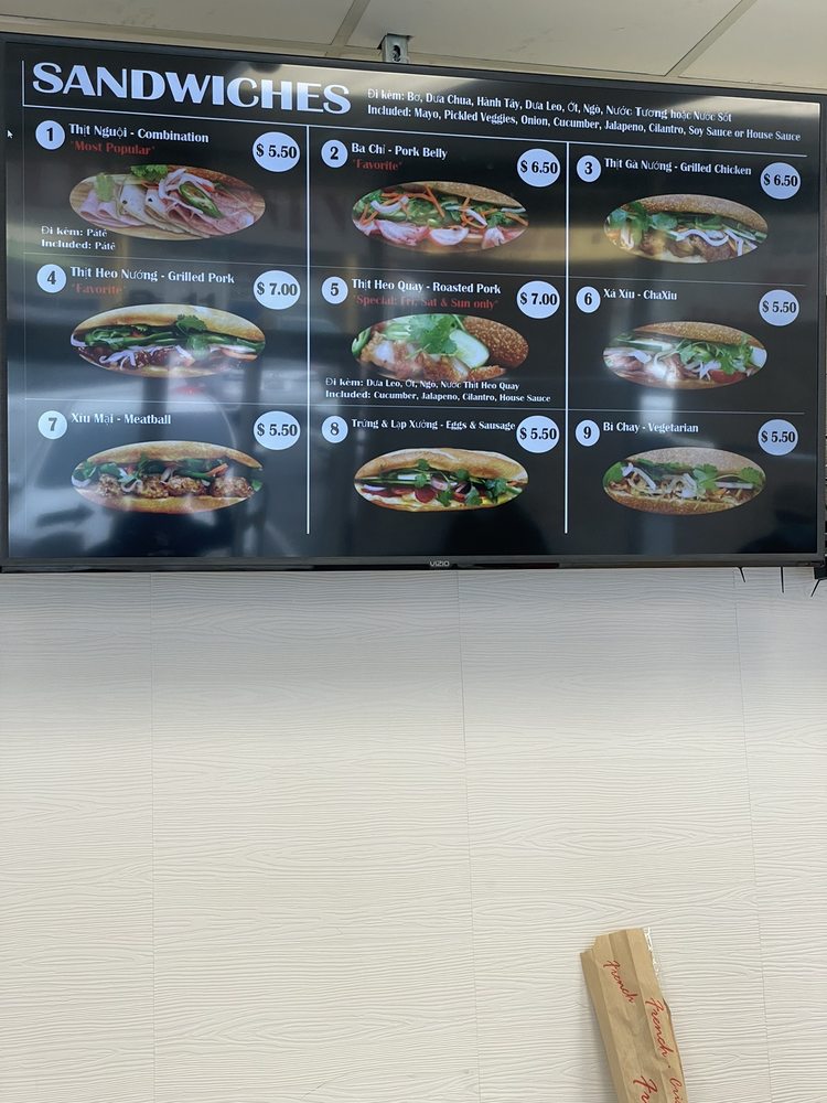Introducing Y-Linh Sandwiches, a hidden gem in San Jose that specializes in authentic Vietnamese sandwiches, or Banh Mi. Nestled at 2559 S King Rd Ste. B-11, this charming eatery offers a delightful menu featuring the Combination Sandwich Thit nguoi, packed with savory layers of steamed pork roll, ham, head cheese, and house-made mayo, all for just $8.00. The Pork Belly Sandwich Ba ch ($8.50) and Grilled Chicken Sandwich Thit ga nuong immerse you in a world of flavor, complemented by fresh pickled veggies and herbs.